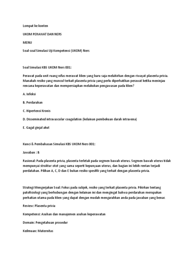 Sering buang air D. Description Download Pembahasan Soal-soal UKOM Perawat Ners D3 Hasil Lokakarya Free in pdf format.